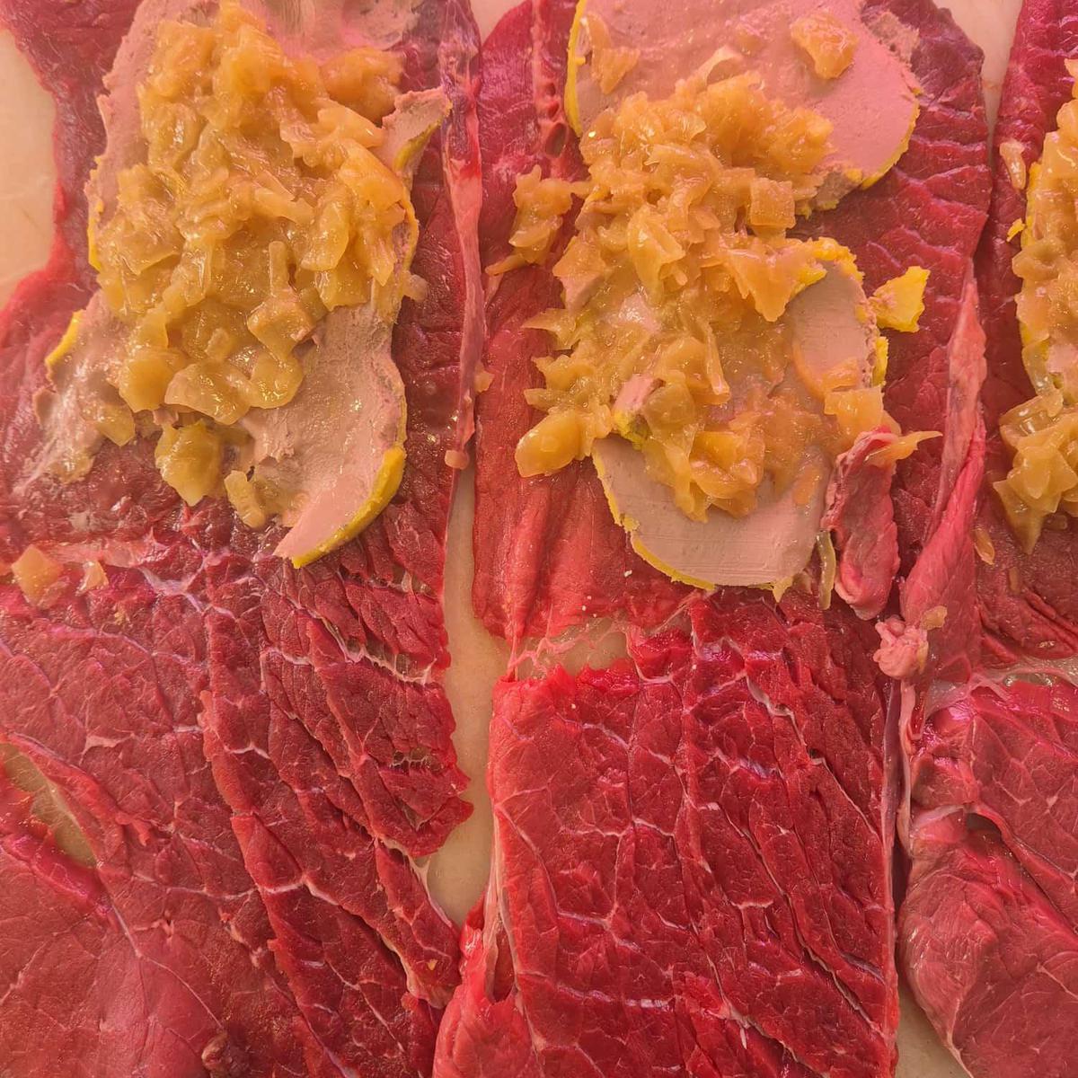 CACHOPO RELLENO DE MOUSSE DE PATO Y CEBOLLA CARAMELIZADA